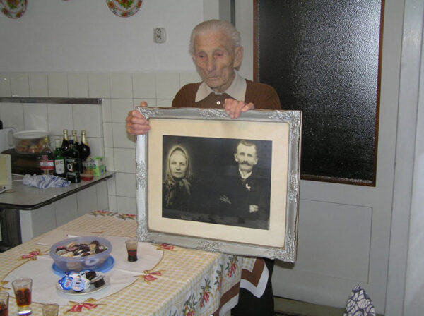 Alfons Böhm s fotografií svých rodičů v den svých 100. narozenin.