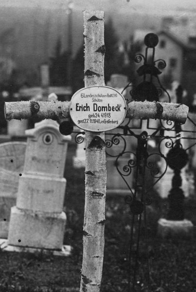 Erich Dombek sloužil u 6.Landesschützen Bataillon 590 (6.rota zeměbranného praporu č. 590) který vznikl 6.srpna 1940 ( Wehrkreis VIII) v počtu 6.Kompanien (6.rot) za účelem ostrahy válečných zajatců.Tento prapor byl zpočátku nasazen ve Francii, koncem roku 1941 byl podřízen 432 Division z.b.V (432.divize ke zvláštnímu nasazení) ve Schweidnitz ( Svidnice- PL).Ve Francii utrpěl Erich Dombek zranění ruky,na léčení byl poslán do záložní nemocnice ve Freiwaldau – Gräfenberg (dnešní Jeseník) kde po částečném vyléčení sloužil dál jako strážný v britském zajateckém táboře, kde později onemocněl tyfem na který 27.11. 1940 zemřel. Odpočívá na válečném hřbitově v Brně.
