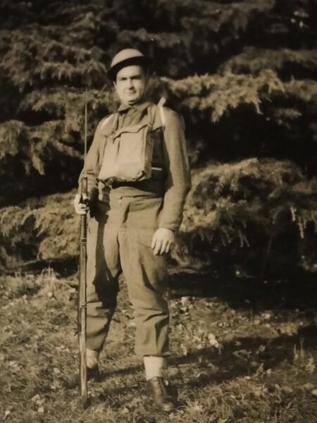 Jindřich Janoš na stejném místě v nově vyfasovaném britském battledressu.