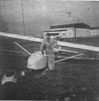 Ernst Kaczmarz u kluzáku Grunau Baby II v Ostravě-Hrabůvce