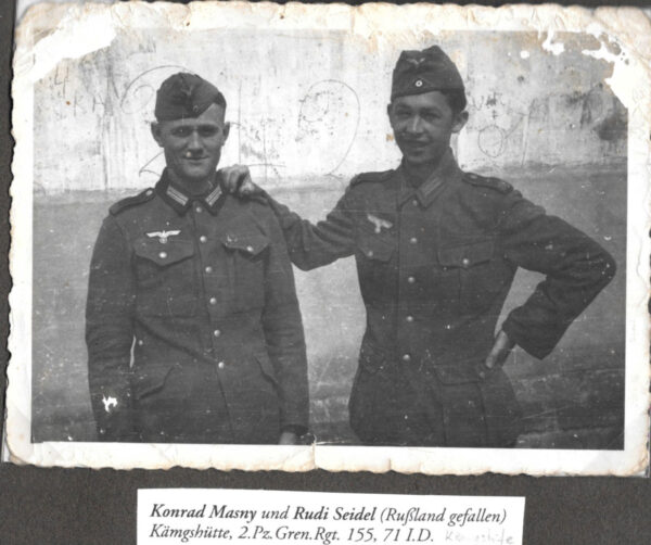 Konrad Masny se narodil v Markvartovicích, kde žil v domě čp. 30. Ve svých 15 letech odešel v roce 1938 za prací do města Breslau (dnes Wrocław, Dolnoslezské vojvodství, součást Polska). Tam narukoval k RAD (Reichsarbeitsdienst – Říšská pracovní služba) – zpočátku civilní, později polovojenská pracovní organizace, postupně zřizovaná v Německu po nástupu nacistů k moci. Jejím úkolem bylo snížení nezaměstnanosti. Do RAD byli povolávání mladí říšští Němci. Dne 26. června 1935 vydali nacisté zákon o všeobecné povinnosti k pracovní službě pro mládež obou pohlaví (existovala tedy i ženská složka RAD) od dovršení 20 let na půl roku. Pro muže měla být přechodem mezi školou a armádou – po půl roce práce v RAD přešli muži do kasáren. Povolání k RAD de facto znamenalo narukování do Wehrmachtu. (zdroj: Wikipedie)