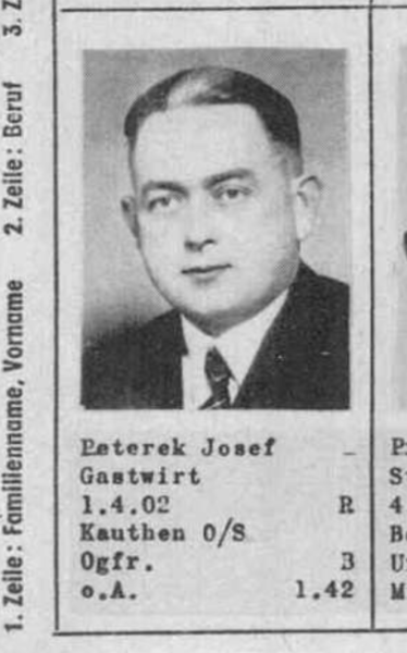 (Rodiče: Franz Peterek * 25.09.1871 † 25.10.1928 a Antonie Kreiczirsky * 06.12.1873 † 13.10.1950, manželka: Agnes Oppler * 18.04.1908 † 05.04.1982)