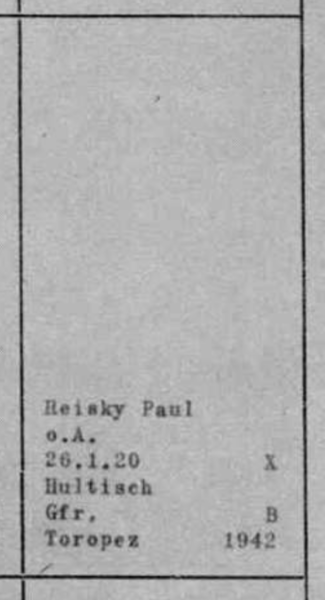 Paul Reisky se jako příslušník 5./Grenadier-Regiment 189, 81. Infanterie-Division, 6.Paulusovy Armády účastnil bojů o dobytí Stalingradu. Od 20.01.1942 o něm již nejsou žádné další zprávy, proto je tímto dnem prohlášen za nezvěstného.