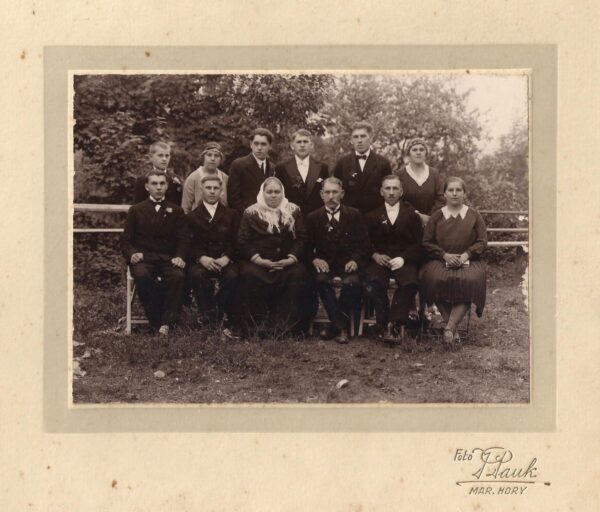 Rodina Swaztina nahoře zleva“ Gerhard, Marie, Alois, Wilhelm, Franz, Amalia. Dole zleva: Josef, Karl, Barbara, Augustin, Johann, Agnes