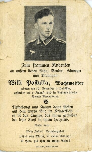 Postulka Wilhelm diente ab 1936 in der tschechoslowakischen Armee, wo er den Dienstgrad eines Unteroffiziers erreichte. Die deutsche Wehrmacht übernahm ihn mit dem bisher erreichten Dienstgrad und Postulka Wilhelm stieg im Rang weiter auf.