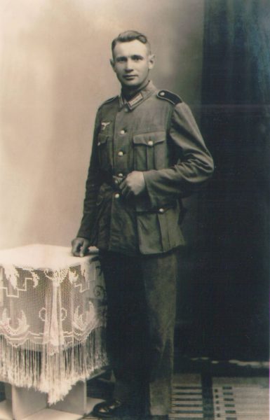 7.8.1944 – 4./Grenadier-Regiment 1123 – 558. Grenadier-Division (später 558. V.G.D.). An der Ostfront 1944 bei Fluß Oder am Fuß schwer verwundet (12 Durchschüsse). Im Lazarett in Gera/Thüringen fiel er in US-Gefangenschaft. Später wurde er ins Lazarett Bad Salzschlief nach Österreich abtransportiert. Dort war er bis 26. Juni 1947. Nach Entlassung kehrte er nach Hause.